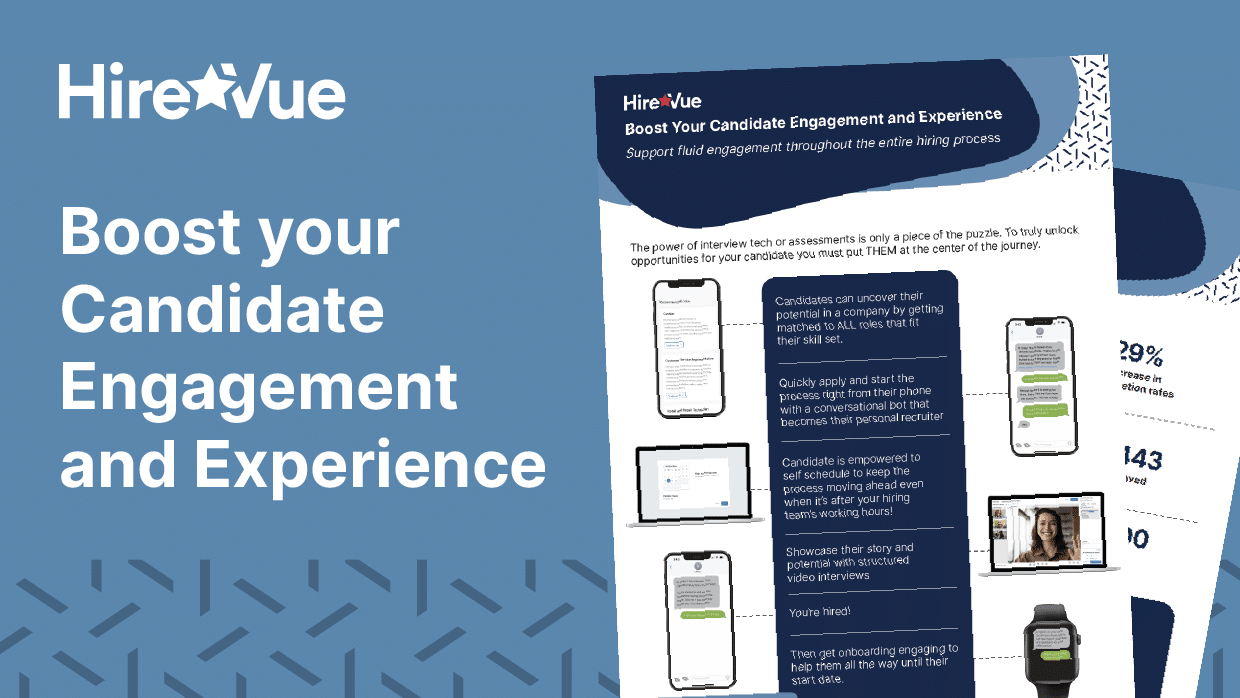 Ready to take your candidate engagement and experience to the next level? Learn how HireVue customers have saved over 25,000 hiring hours, $9,500 per candidate, seen 29% increase in completion rates, and engaged 100% of candidates in 15 minutes.