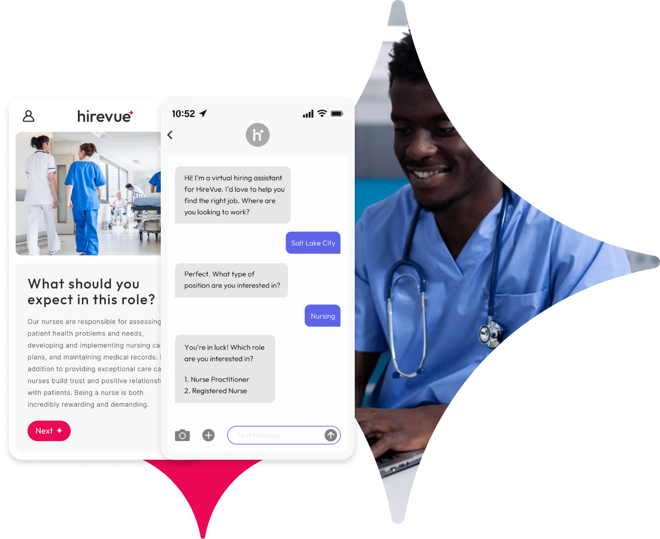 Unlike hospital gowns, our solutions are not one-size-fits all. At Hirevue, we help our healthcare recruitment customers implement a talent engagement strategy specific to your unique challenges and tailored for different areas of hiring.