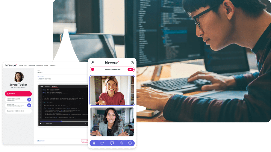 Hiring engineers and developers doesn’t have to be difficult, even if your team isn’t technical. Hirevue is everything you need to screen, assess, and interview tech candidates with confidence. Our platform combines video interviewing, AI-powered evaluation, and validated coding challenges for a comprehensive and fair assessment of technical skills.